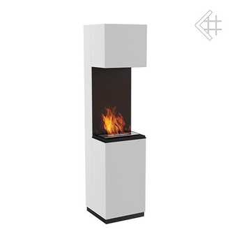 Портал биокамина выполнен из МДФ и окрашен в белый цвет. Внутренний корпус из нержавеющей стали с порошковым покрытием черного цвета. Контейнер для биотоплива емкостью 1,2 литра. Регулировка интенсивности пламени выполняется, как правило, крышкой горелки. Не требует дополнительного подключения дымохода. Вес: 51кг.