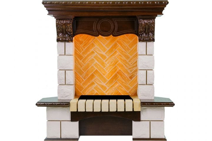 Портал Pierre Lux угловой под классические очаги Dimplex, темный дуб и шампань (Высота 975 мм)